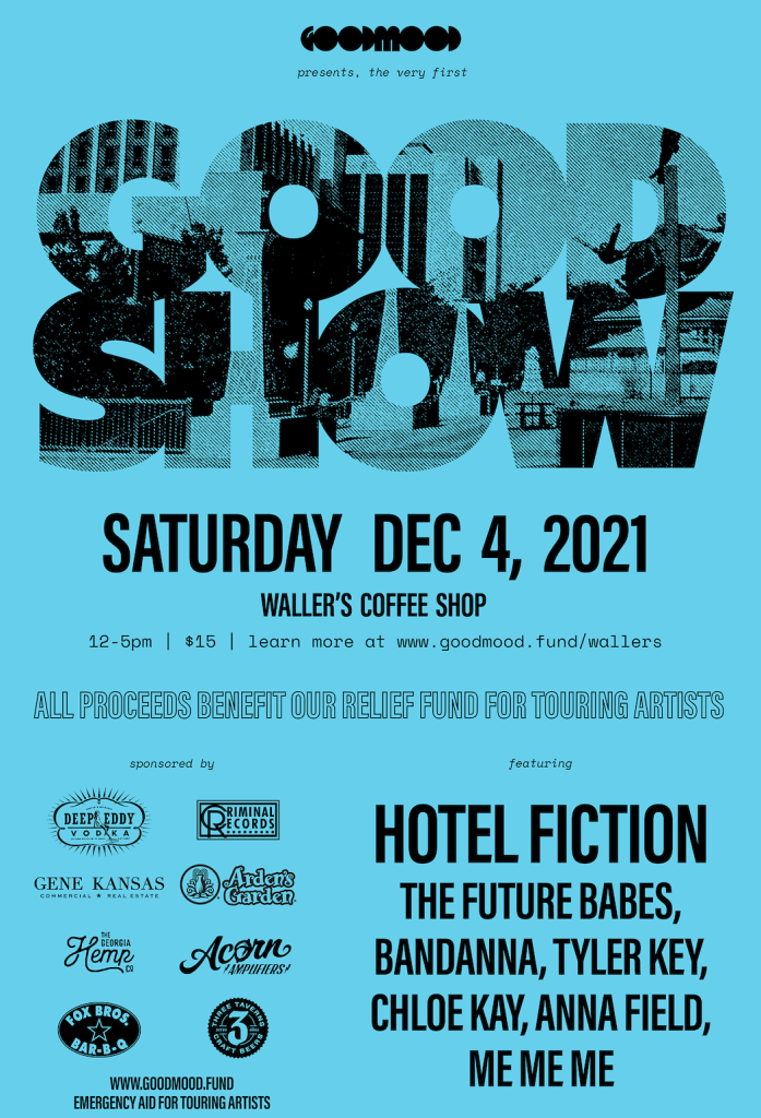 Fast forward to Saturday, Dec. 4: the first Good Show, including seven local bands set to play an afternoon of live music. All proceeds will benefit The Goodmood Fund. The fund’s motto, “Emergency Aid for Touring Artists,” has special meaning as local bands will play to raise money for struggling musicians. The lineup includes some of Atlanta’s finest up-and-coming bands including Hotel Fiction, The Future Babes, Bandanna, Tyler Key, Chloe Kay, Anna Field, and Me Me Me.