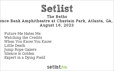 The wonderful “Watching the Credits” is the newest edition to the band’s repertoire, and included on the deluxe edition of 2022’s Expert In A Dying Field (Carpark Records) due out 9/15/23. In it, Stokes sings, “And I spend all night cutting up edits / Watching the credits to find / Direction in my existence.” Although the set was short, the exposure on this night (especially touring with The National) was priceless. These New Zealanders are a terrific live band. Catch them soon.