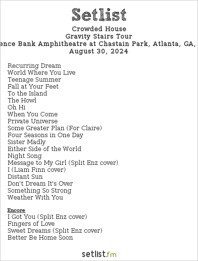 For more info on Crowded House tour dates, visit their site. See setlist below along with the Spotify playlist to match that setlist.