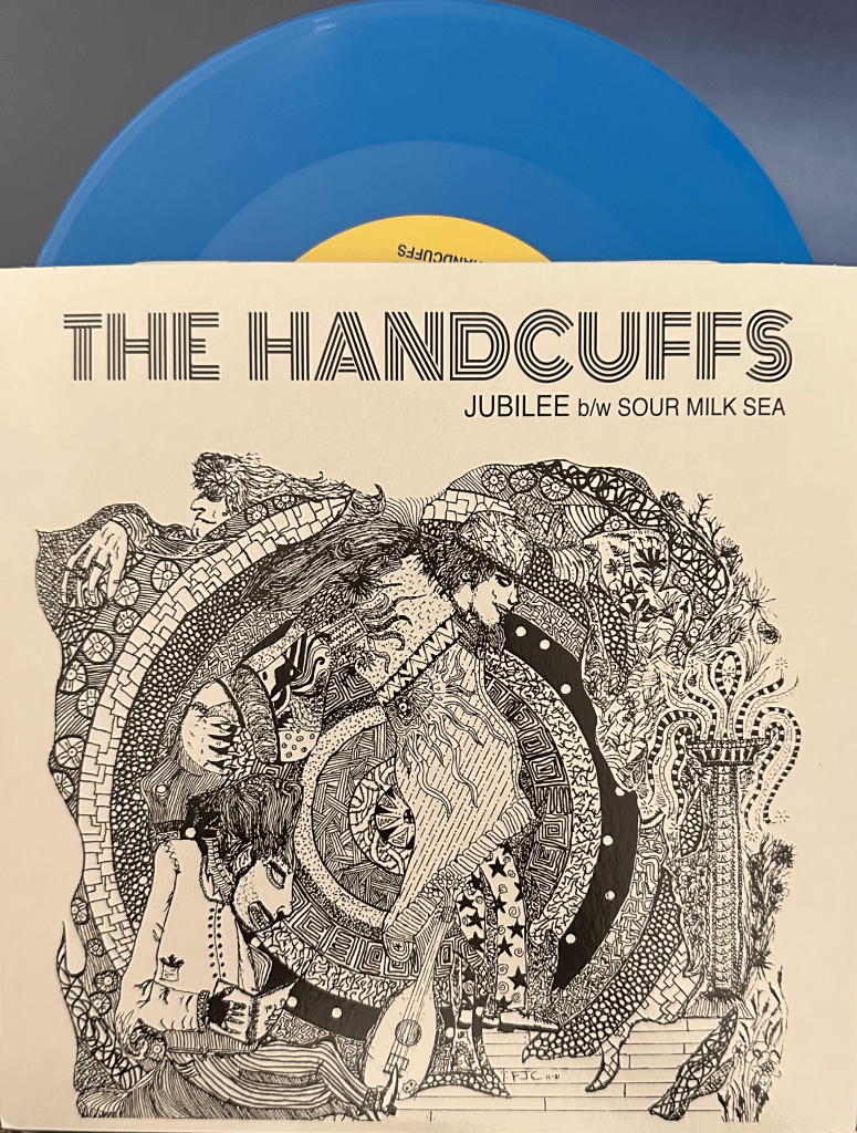 The Handcuffs have released the Burn the Rails Gatefold Special Package on vinyl (for the first time) with bonus 7″ blue vinyl 45 rpm picture sleeve including two brand new songs. Side A is a Handcuffs original titled “Jubilee,” a rocker showcasing Orwell’s rockstar, matter-of-fact vocals over a driving rhythm section. Charlie Short adds powerful guitar riffs while Carolyn Engelmann ties it together with euphonious organ. For those who bought the Rails CD or digital in 2022, the vinyl itself is a new selling point with its gatefold full of new pics of the band, not to mention the killer 45. I got mine.